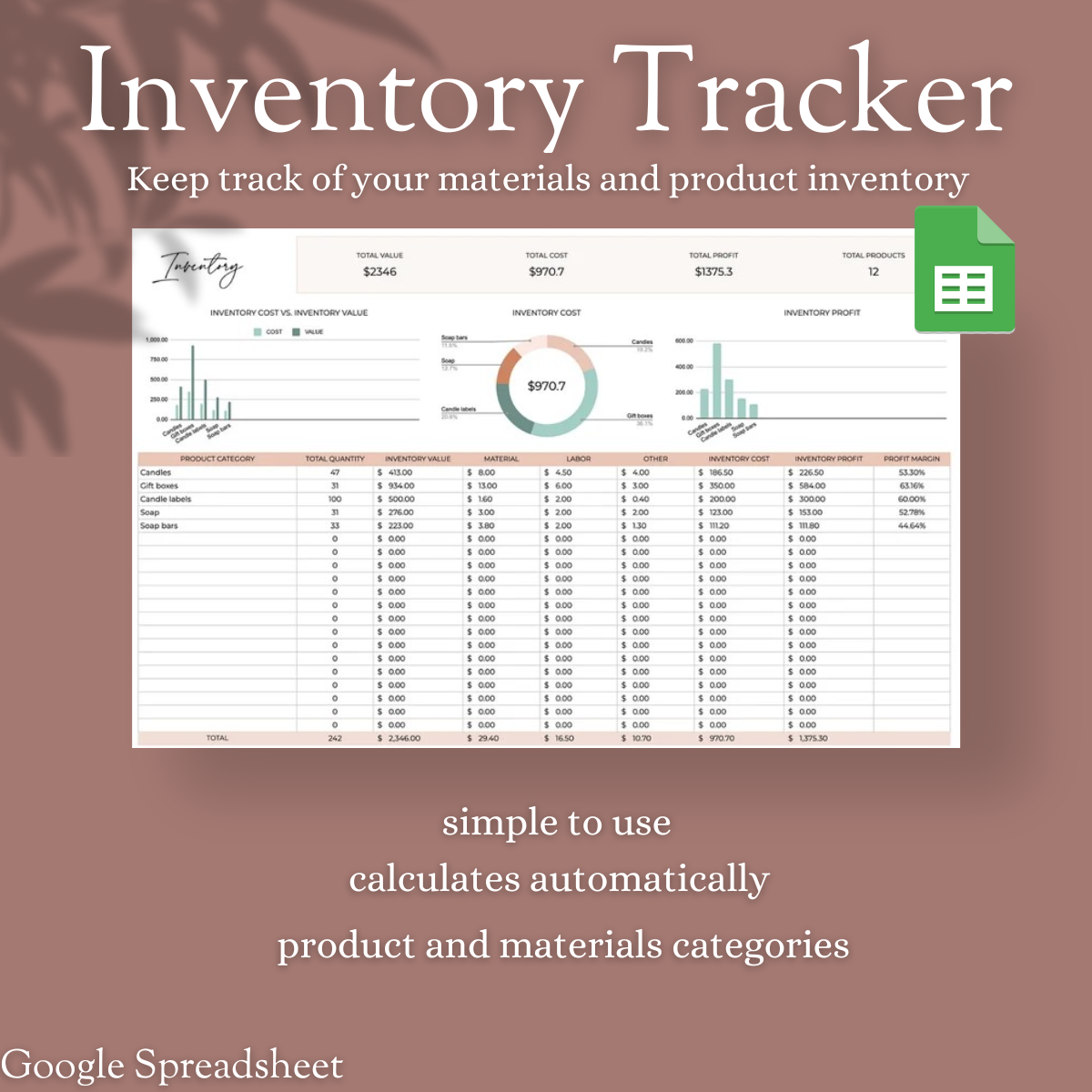Customizable for Your Business: Tailor the spreadsheet to fit your unique products and materials. Everything is flexible to meet your specific needs, no matter how big or small your operation is.